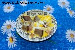 Грибы, салат, язык, Огурцы соленые, Капуста, Уксус, Растительное масло, Перец черный