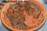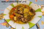 конина, Морковь, Репчатый лук, Топленое масло, Картофель, Горох, перец, Соль