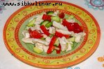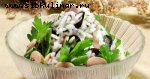 Куриное мясо, груши, Огурец, Лимон, Майонез, фундук, Зелень петрушки, Соль