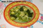 Горох, Куриное филе, Морковь, Луковица, Зелень укропа, перец, Соль