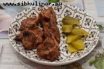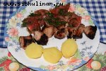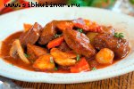 Свинина, Репчатый лук, Томатный сок, Уксус винный, Сахар, Базилик, Соль, перец