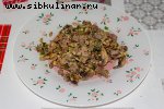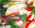 редька зеленая, Репчатый лук, Мясо, Майонез, перец, Соль, Растительное масло