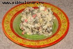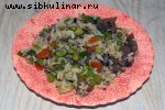 Маринованные грибы, Рис вареный, Помидоры, Сыр, Огурец, Майонез, Зелень, перец