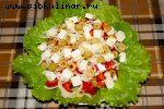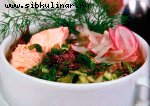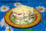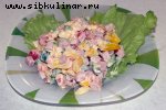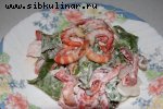 Колбаса, Сыр, Огурцы соленые, Лук, Майонез, Соль, перец, Листовой салат, Овощи