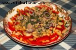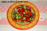 Сладкий перец, Помидоры, Луковица, Растительное масло, лук зеленый, Зелень, Уксус