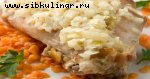 Кефаль, Репчатый лук, Грибы, Растительное масло, Петрушка, Соль, перец