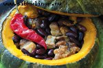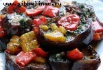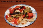 Баклажаны, Чернослив, Сметана, Помидоры, Грецкие орехи, Зелень петрушки, перец, Соль