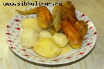 Патиссоны, Брынза, Сметана, Растительное масло, Чеснок, лук зеленый, перец, Соль