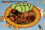 Печень куриная, куриные сердечки, Огурец, Топленое масло, Соль, перец