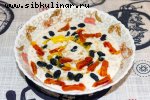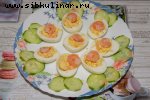 Яйцо, Помидоры, Лук-порей, Икра красная, Огурец, Сметана, Сливочное масло, Укроп