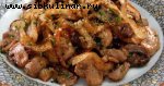 Индейка, Сливочное масло, Шампиньоны, сыр тертый, Сметана, Коньяк, Соль, перец