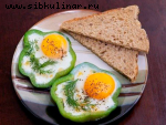 Яйцо сырое, Ржаной хлеб, Бекон, Сливочное масло, Перец черный, лук зеленый, Соль