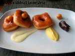 манго, Сахар, Сливочное масло, Ром, Сахарная пудра, Сливки, кедровых орешков