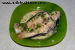 Карась, Сметана, Репчатый лук, Сливочное масло, Специи, Молоко, Соль