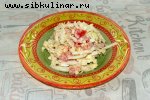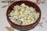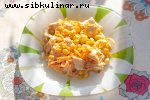 Консервированная кукуруза, Крабовые палочки, Яйцо, Огурец, язык, Майонез, Соль