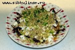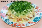 Вареная рыба, Луковица, сыр твердый, Сухие грибы, Растительное масло, Майонез