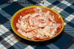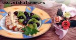 Грибы, филе куриное, Корень сельдерея, каперсы, Сыр, Майонез, Помидоры