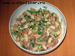 редька зеленая, Репчатый лук, Мясо, Майонез, перец, Соль, Растительное масло