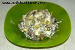 Яйцо вареное, Курица вареная, Луковица, яблоки, сыр твердый, Майонез, Грецкие орехи