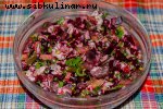 яблоки, картофель отварной, Лук, Мясо вареное, свёкла варёная, Яйцо, Грецкие орехи
