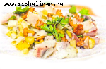 Горчица, Зеленый салат, Растительное масло, Морковь, Сахар, Сельдерей, Уксус, Фасоль