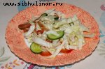 Лаваш, Лимон, Помидоры, Огурец, Кинза, Зеленый салат, Растительное масло, Тмин, Соль