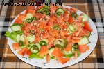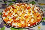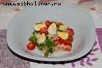 Рыба, Картофель, Огурцы соленые, Помидоры, Майонез, Яйцо, Салат зеленый, Соль