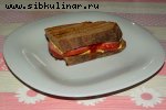 Бекон, Хлеб, Помидоры, Пасторма, Сыр, салат, лук красный, Майонез, Сливочное масло