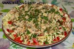 Грибы, филе куриное, Корень сельдерея, каперсы, Сыр, Майонез, Помидоры