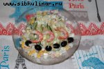 Огурец, Помидоры, Болгарский перец, Маслины, Лимон, Брынза, Зелень петрушки и укропа