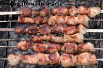 Свинина, Репчатый лук, Томатный сок, Уксус винный, Сахар, Базилик, Соль, перец
