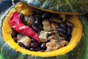 корочки. Вынуть из масла и потушить в небольшом количестве бульона с кореньями. Готовое блюдо охладить и нарезать тонкими кольцами.