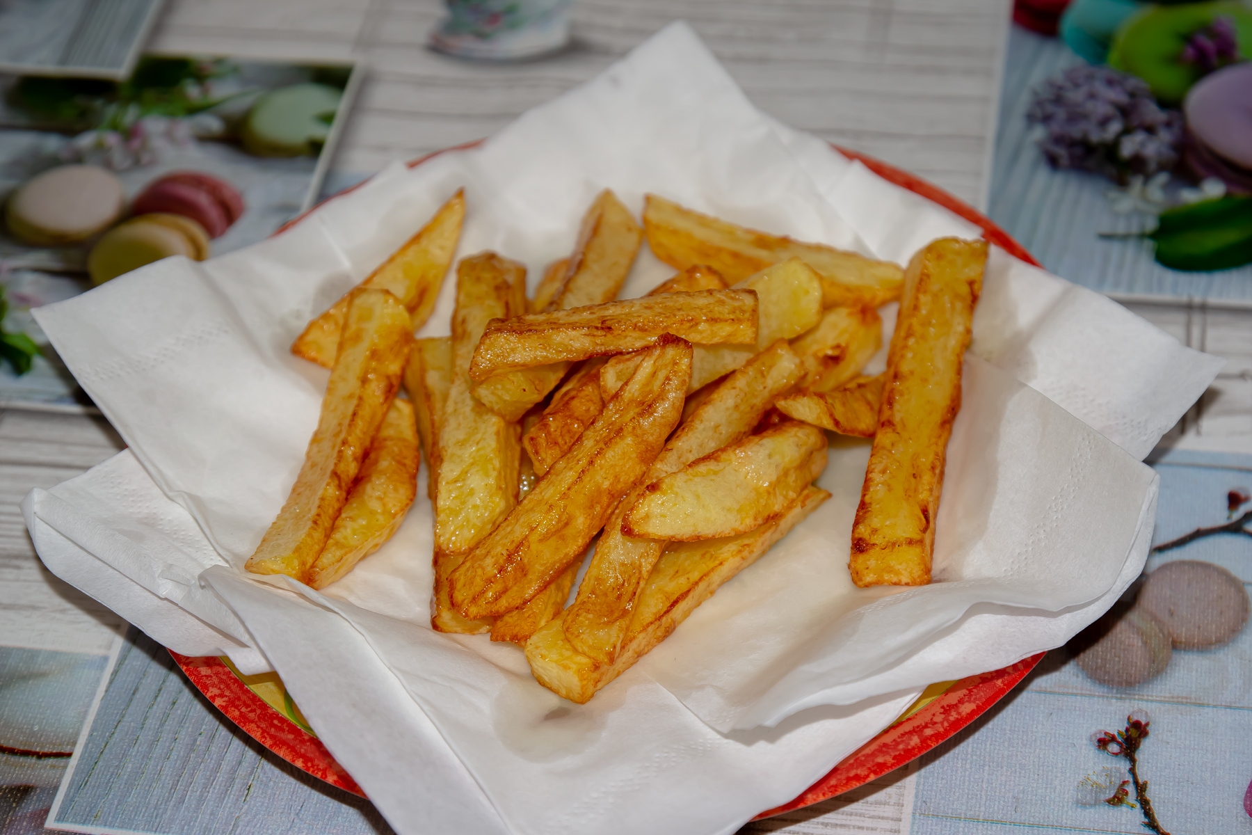 Жарим до яркого румянца около 5-7 минут. Переворачиваем шумовкой. Аккуратно извлекаем румяный картофель из сковороды и выкладываем его на бумажную салфетку на 2 минуты. Даем обсохнуть. Снова картофель погружаем в кипящее масло, но уже на 3 минуты. После вторичной жарки опять кладем продукт на бумажные салфетки. Даем впитаться лишнему маслу.