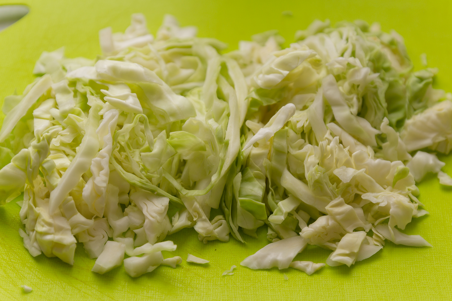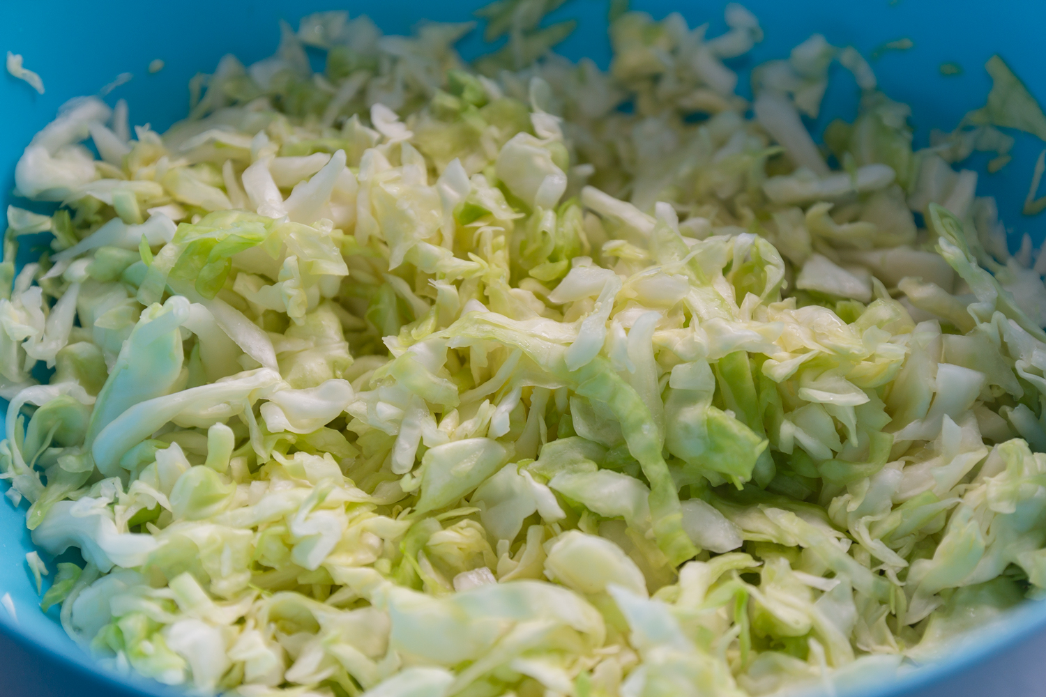 Нашинкованную капусту хорошо посолите и оставьте на 30 минут.