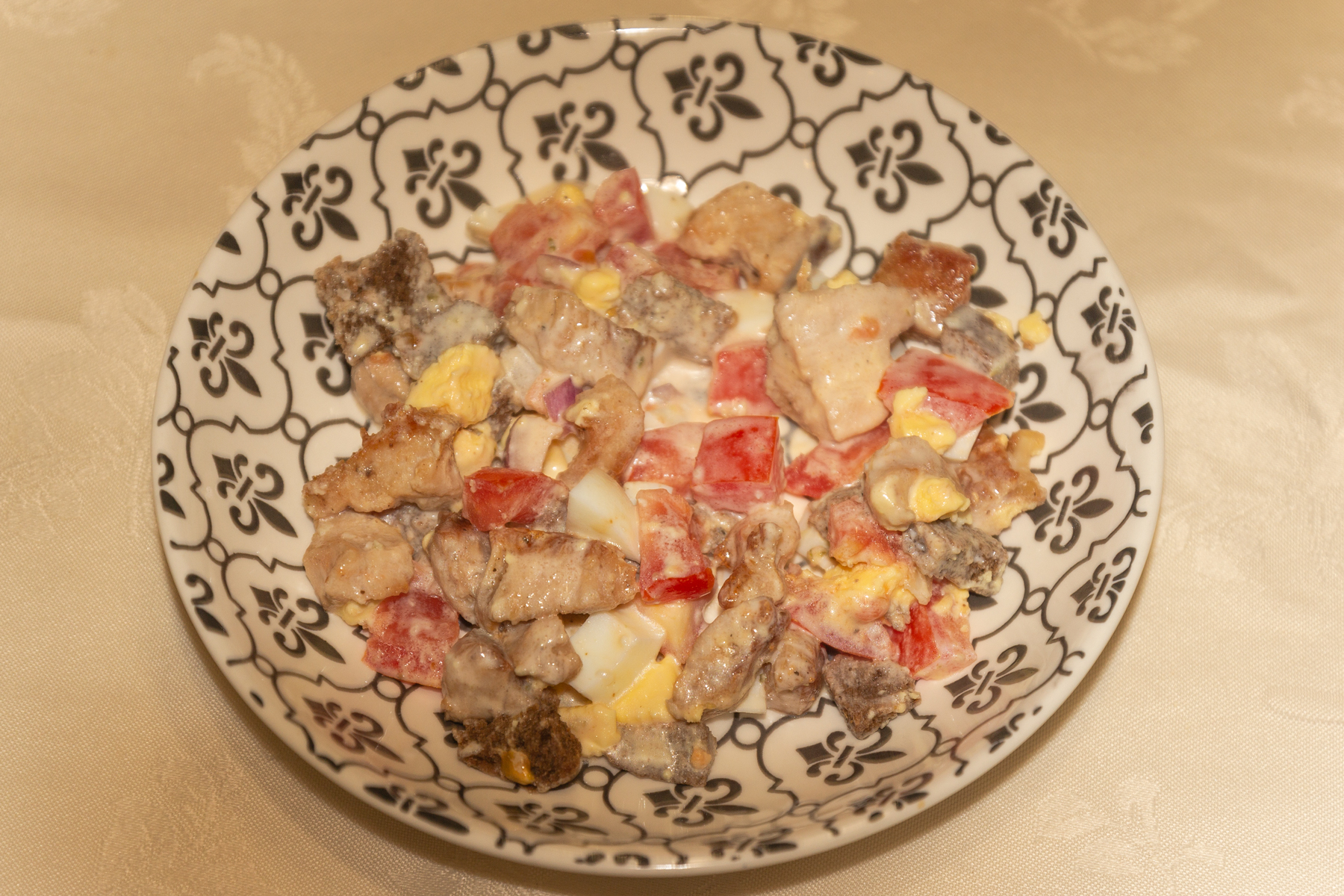 Салат подавать сразу, чтобы гренки не размокли