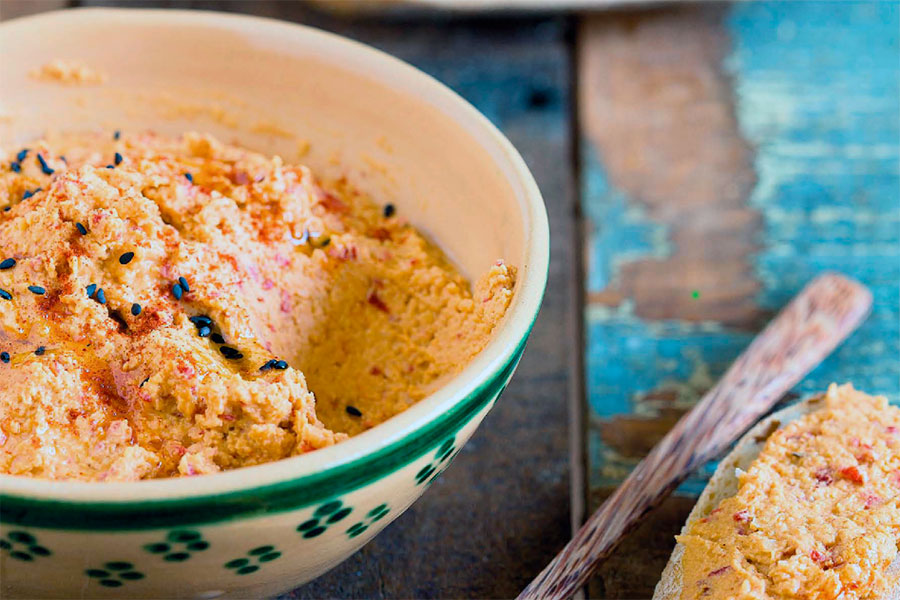 Нут замочите на ночь, слейте воду. Залейте новой водой и варите до готовности с солью около 3 часов. Слейте воду, оставив в кастрюле около 1 стакана жидкости. Влейте половину масла. Превратите нут с водой и маслом в пюре блендером. Кунжут подсушите без масла на сковороде, остудите, поместите в чашу блендера, влейте половину масла и 150 мл холодной воды. Влейте лимонный сок, добавьте чеснок и еще раз перемешайте. Соедините две смеси, досолите, перемешайте с помощью блендера.