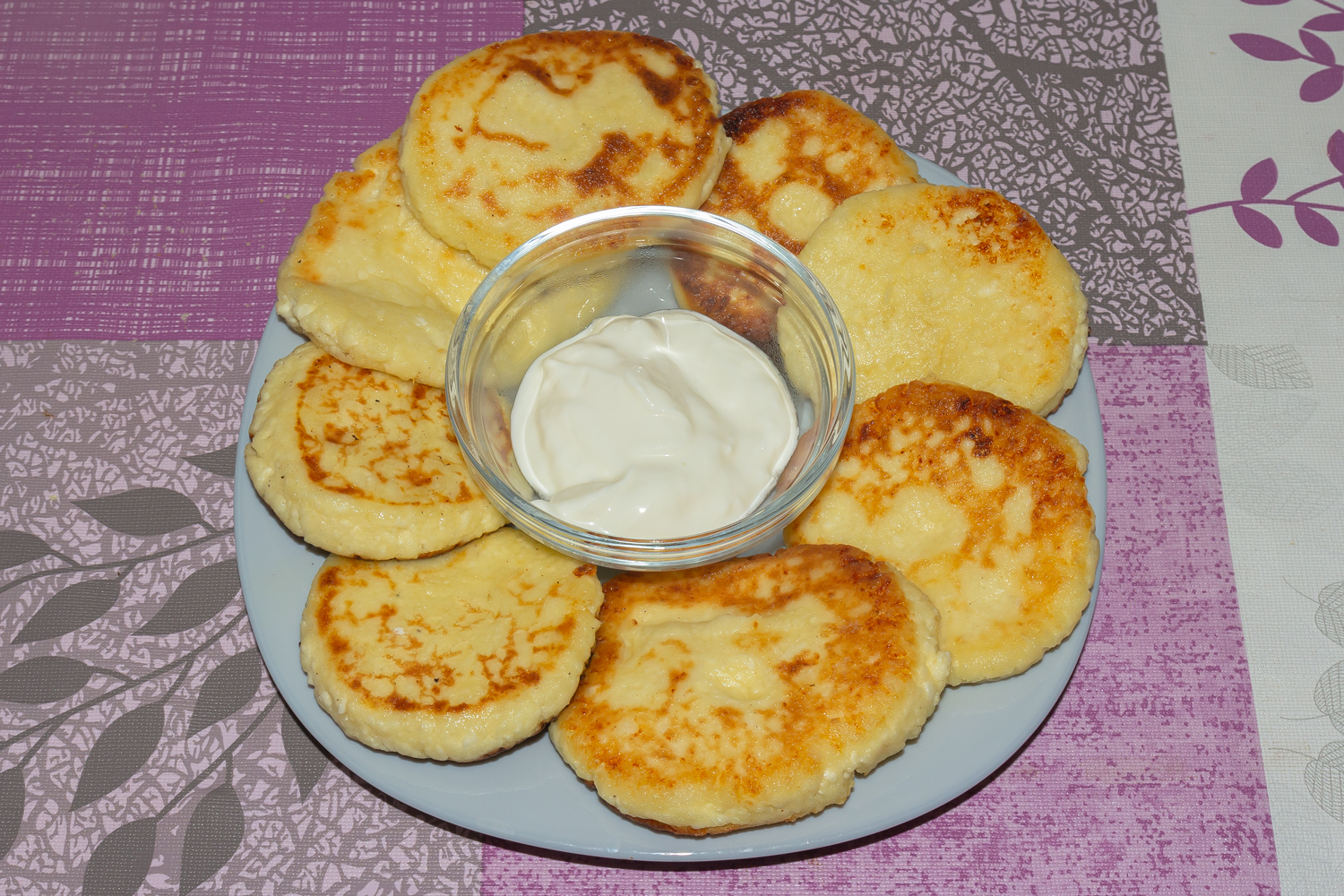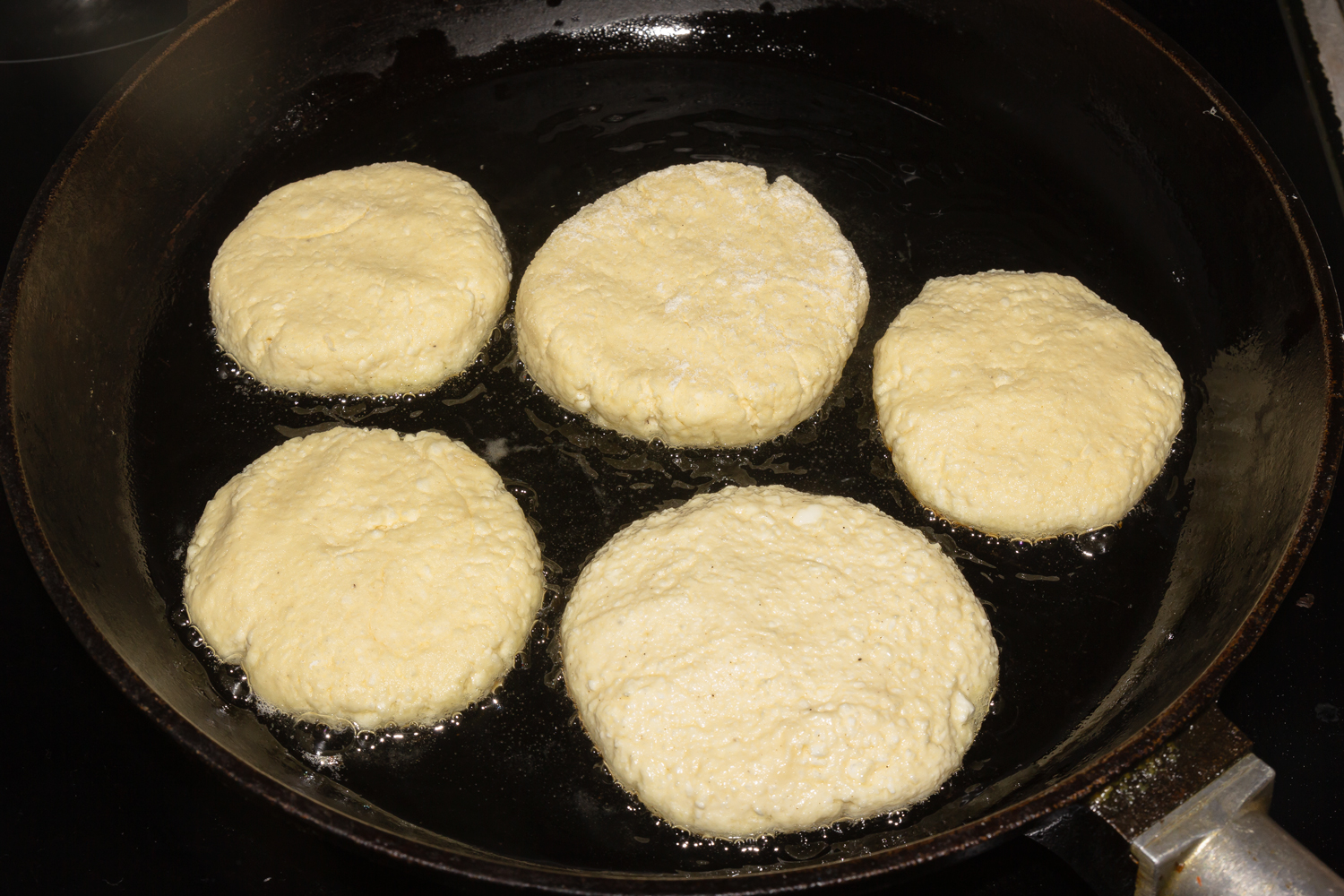 Будем жарить сырники на среднем огне с двух сторон до золотистой корочки.