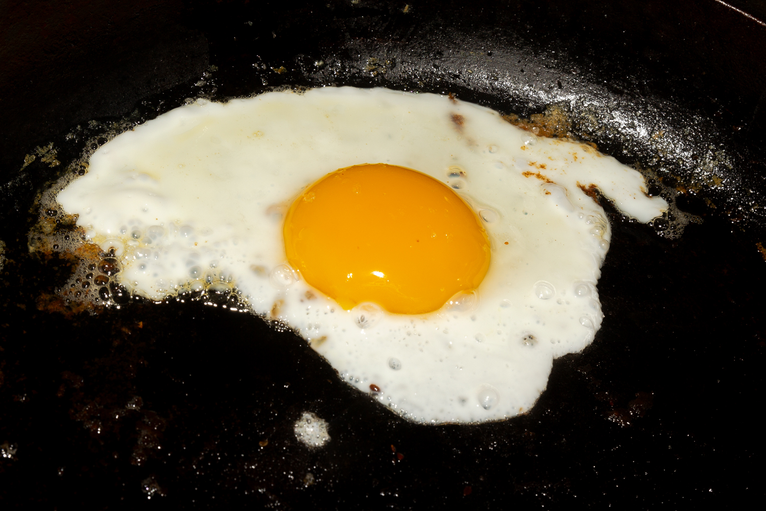 Разогреть сковороду с маслом. Яйца пожарьте немного подсолив.