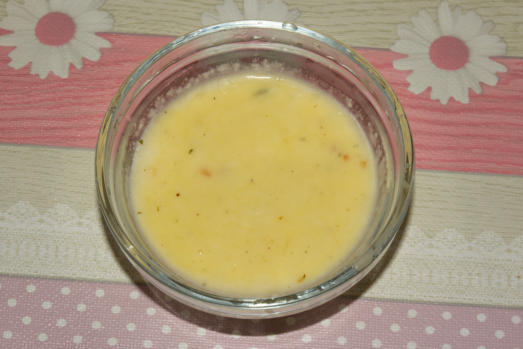 В сотейнике растопить сливочное масло. Всыпать муку, перемешать и обжарить минуту. Влить тёплое молоко, помешивая соус. Довести до кипения, не переставая мешать. Добавить тёртый сыр частями, перемешать до однородности. Снять с огня, посолить, поперчить, добавить сушеный чеснок.