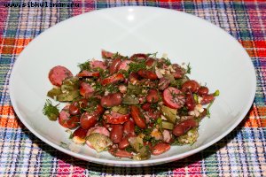 Чипсы слегка размять, не вынимая из пакета. Крабовые палочки нарезать кружками толщиной 0,5 см. Чипсы, крабовые палочки и кукурузу из банки (жидкость слить) выложить в глубокую посуду, перемешать. Заправить оливковым майонезом.