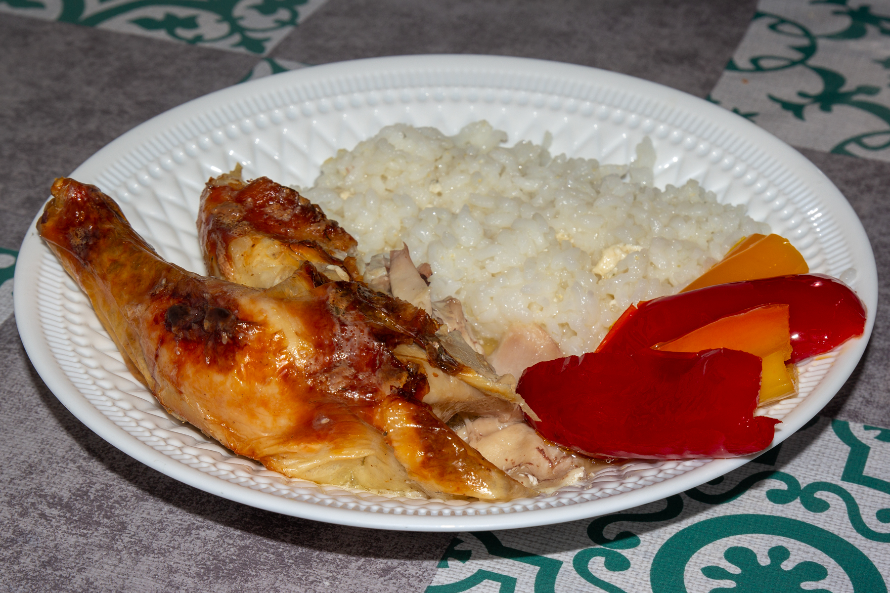 Два целых зубка чеснока вложить внутрь курицы. Уложить курицу на противень, можно добавить немного воды. Сверху закрыть фольгой. Запекать в духовке в течение 1 часа. После этого фольгу снять, налить в противень немного воды, а курицу обмазать 1 ст. л. сметаны. Снова поставить в духовку, не накрывая.
