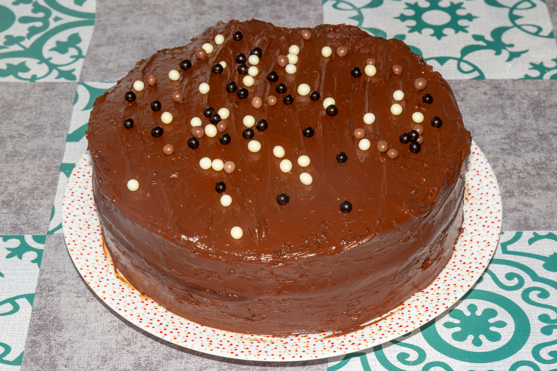 Декор перед подачей: Посыпьте торт какао-порошком и украсьте крупной стружкой того же 70% шоколада. Это подчеркнет «трюфельную» суть десерта. Я добавила только кондитерскую посыпку.