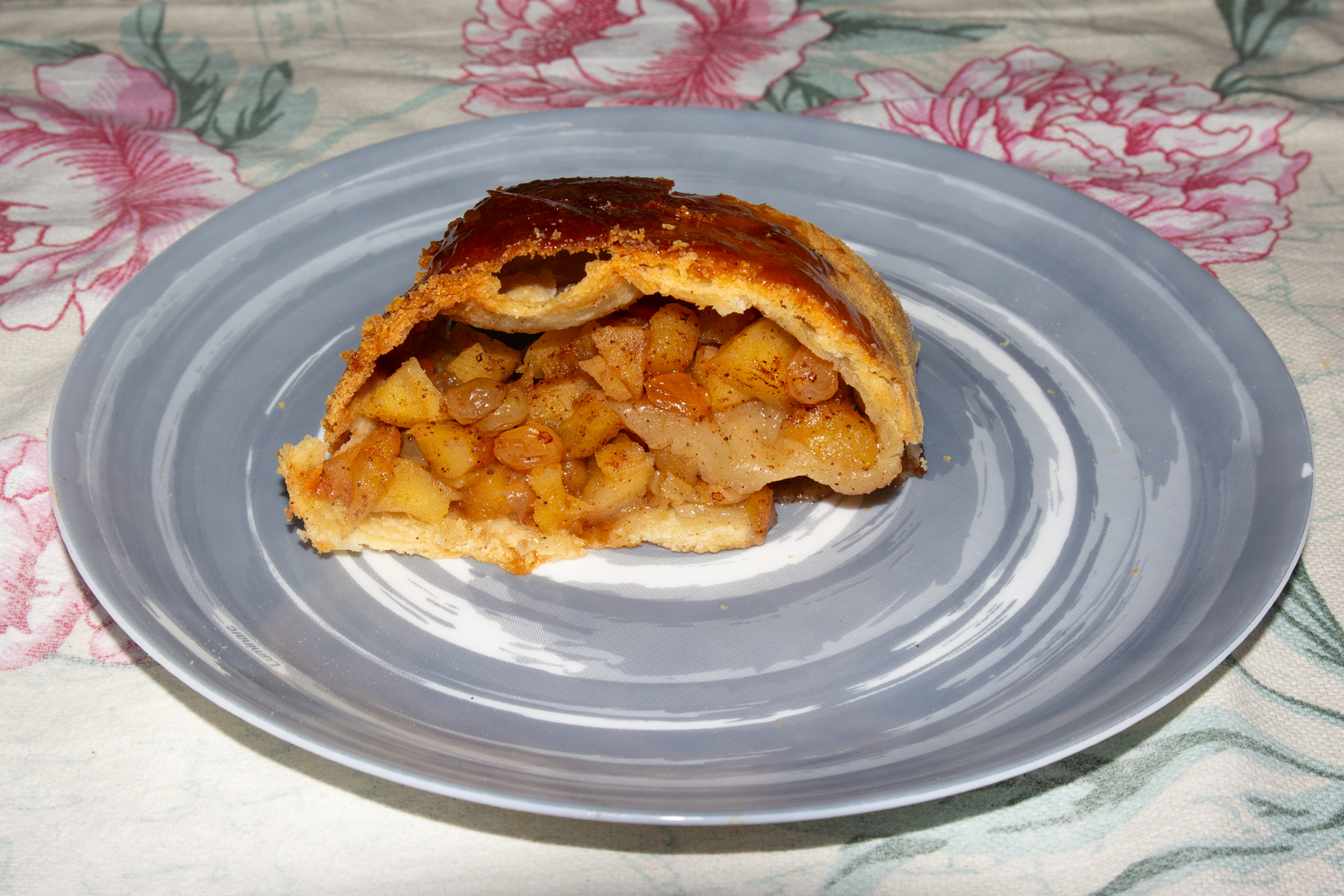 Отступая от длинной стороны пласта 2–3 см, ровным слоем выложите приготовленную ранее яблочную начинку. Плотно сверните рулетом и переложите на противень, выстланный бумагой для выпечки. Сливочное масло растопите. Смажьте небольшим количеством рулет на противне и выпекайте 35–45 минут при 180°C. В процессе выпекания 3-4 раза смажьте штрудель растопленным маслом.