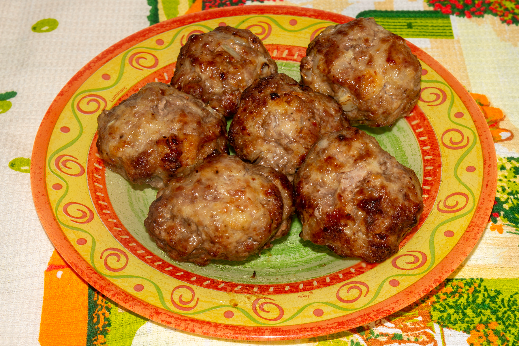 Решётку аэрогриля смажьте маслом. Мокрыми руками сформируйте котлеты. Запекайте при температуре 200 градусов 15-20 минут. Затем аккуратно переверните лопаткой и готовьте ещё 5-10 минут. Точное время будет зависеть и от того, какое у вас мясо для фарша, и от размеров котлет.