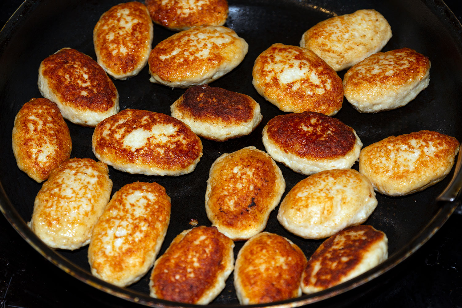 Разделать из него котлеты продолговатой формы или круглые битки, обвалять их в сухарях и подровнять ножом.