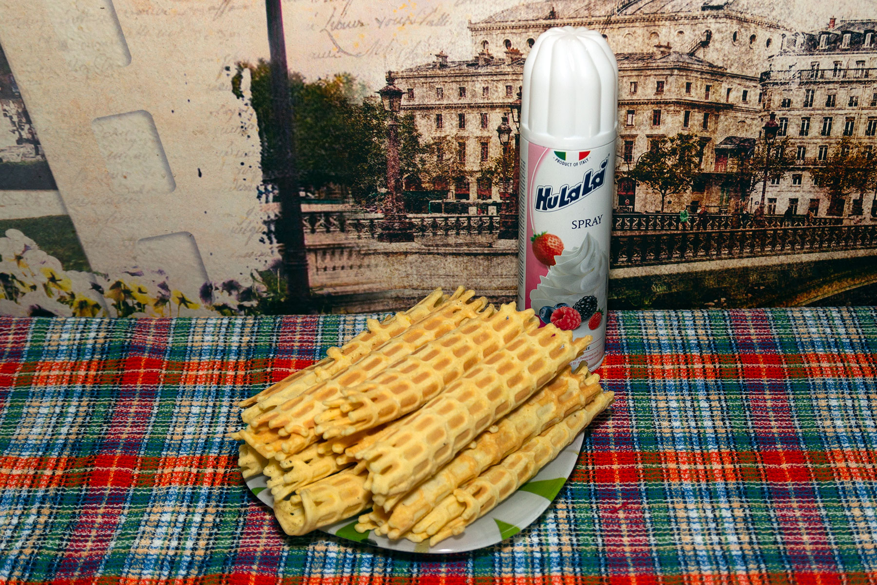 Подаем вафли с чаем или какао. Внутрь трубочки добавляем взбитые сливки.