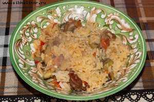 Говядину (грудинку) нарезать кусками и обжарить на жире. Посолить по вкусу и посыпать молотым перцем. Дно кастрюли выложить тонкими ломтиками сала, на него положить мясо, а сверху - очищенные и промытые, крупно нарезанные грибы, более мелкие оставить целиком. Влить два стакана горячей воды, прибавить черный перец, посолить и варить на слабом огне, плотно закрыв крышку. Когда мясо станет мягким, подать его вместе с грибами, полить блюдо процеженным соусом.
