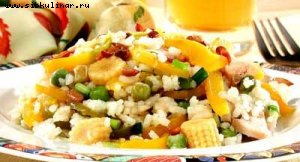 Редис нарежьте кружками, добавьте нарубленный ревень, посыпьте сахаром, солью, перцем по вкусу. Салат заправьте сметаной и украсьте зеленым луком и дольками вареных яиц