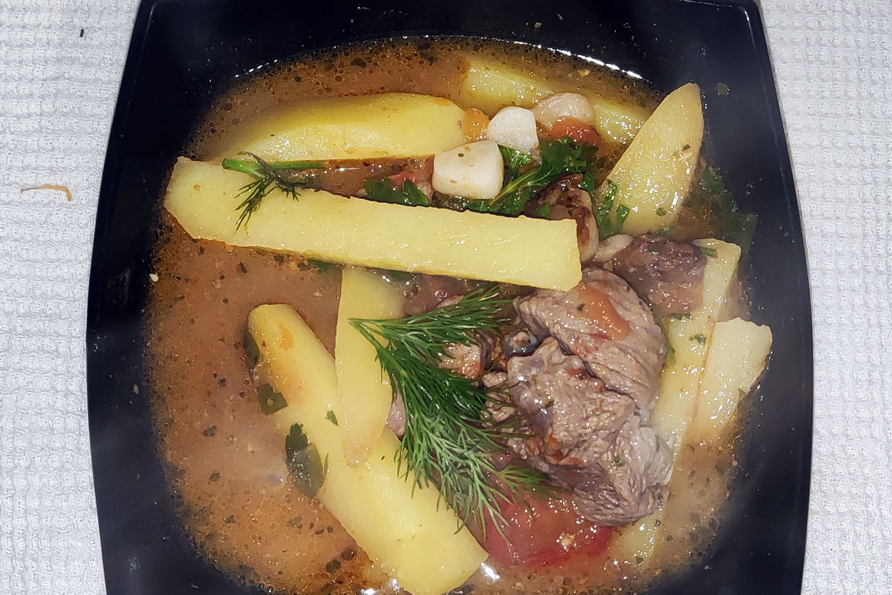 Приготовить томатный соус, залить мясо и тушить до готовности.