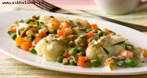 Разотрите майонез со сметаной. Мелко нарубите лук и добавьте в полученную смесь. Паста должна иметь консистенцию густого крема. Добавьте рубленую зелень, лимонный сок, сахар, соль и перец и тщательно перемешайте.